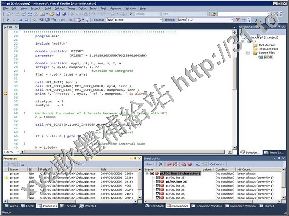 PGI Visual Fortran將 Portland Group 的 PGI 套件(高性能 64 位和 32 位並行 Fortran