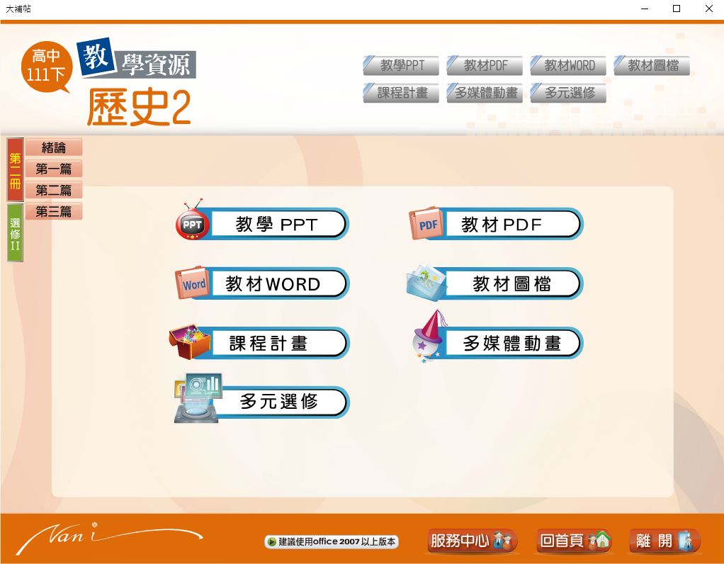 111學年下學期 高中大補帖 南一版 歷史科(二、選修II) 教學光碟