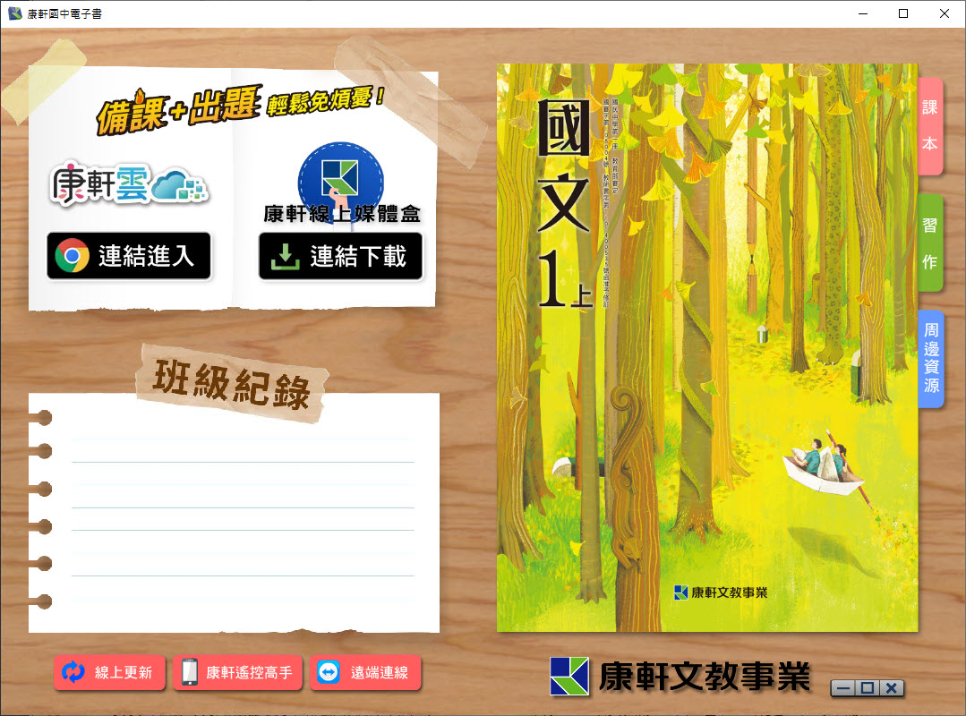 112學年上學期 國中 康軒版 國文電子書 1年級(含課本、習作含解答、教學資源)教學光碟