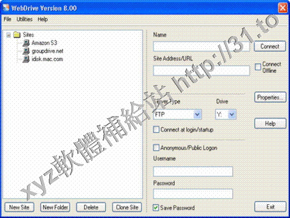The WebDrive site manager makes it easy to define your