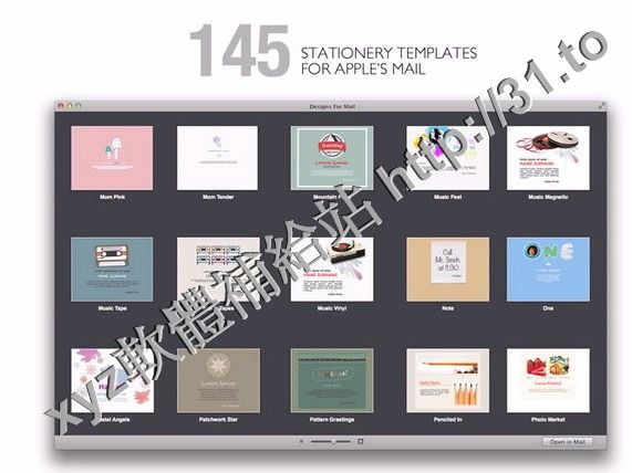 Designs For Mail for Mac是一個很好的Apple Mail信紙模板套件。它擁有145款設計